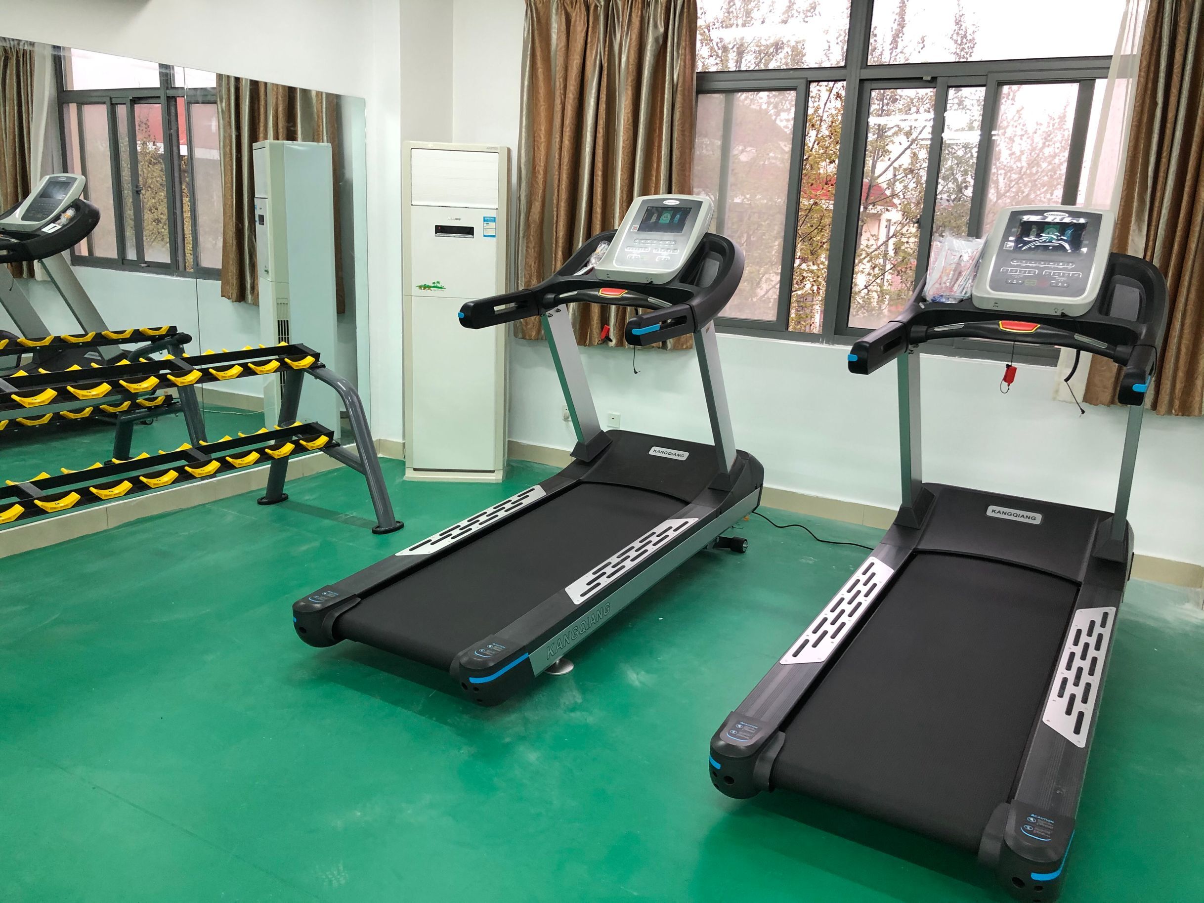 健身房有氧康強商用跑步機和康強動感單車搭配組合,即能滿足日常的走路、跑步鍛煉,也能進行大強度的單車訓(xùn)練項目。