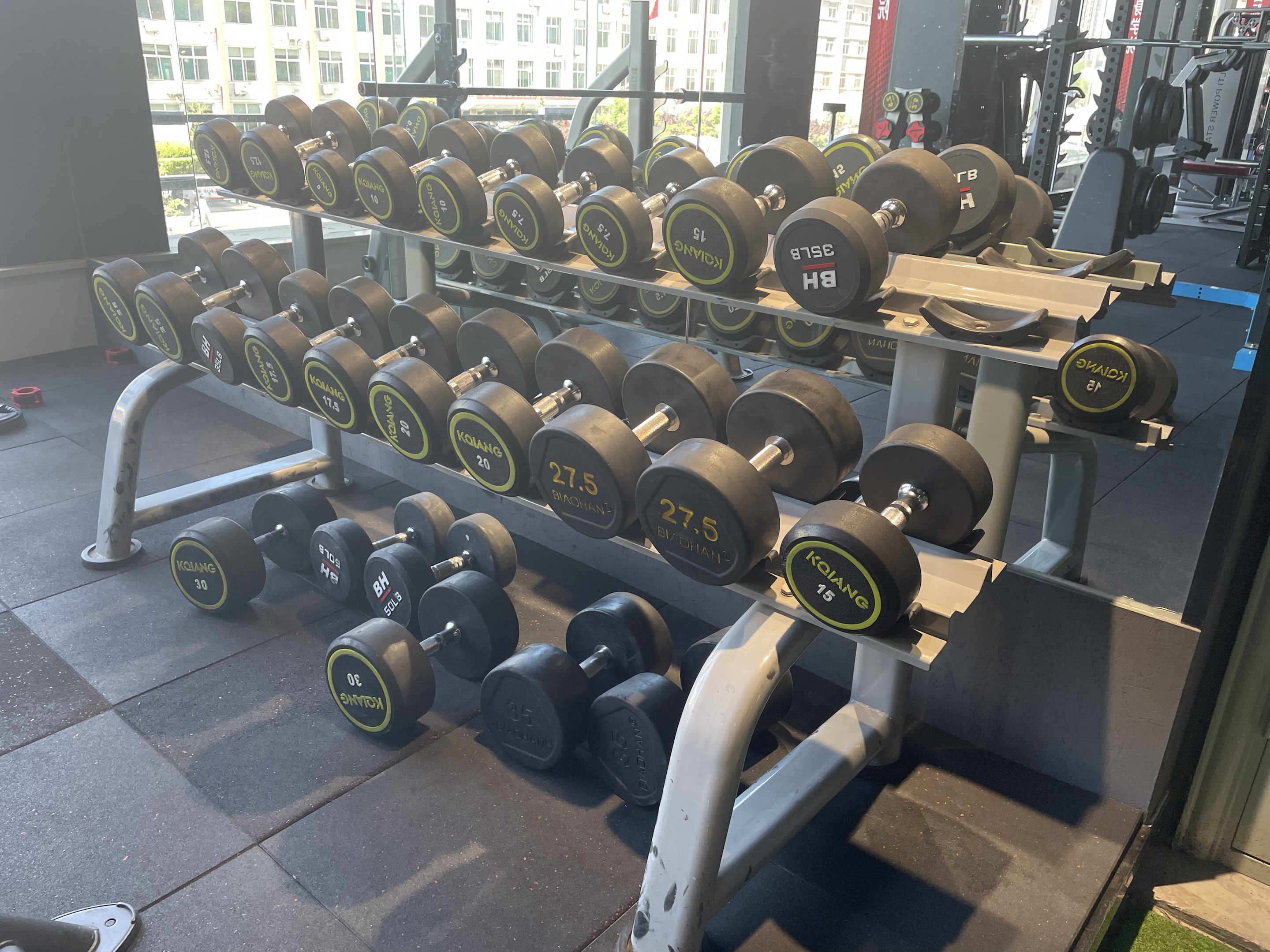 啞鈴是健身房中最常見的器材之一。它的用途廣泛,可以用來進(jìn)行力量訓(xùn)練和有氧運(yùn)動。通過啞鈴練習(xí),您可以針對不同部位的肌肉進(jìn)行有針對性的鍛煉,從而快速塑造身體線條。舉重、蹲舉等動作可以增加肌肉的負(fù)荷,促使肌肉更快地增長。