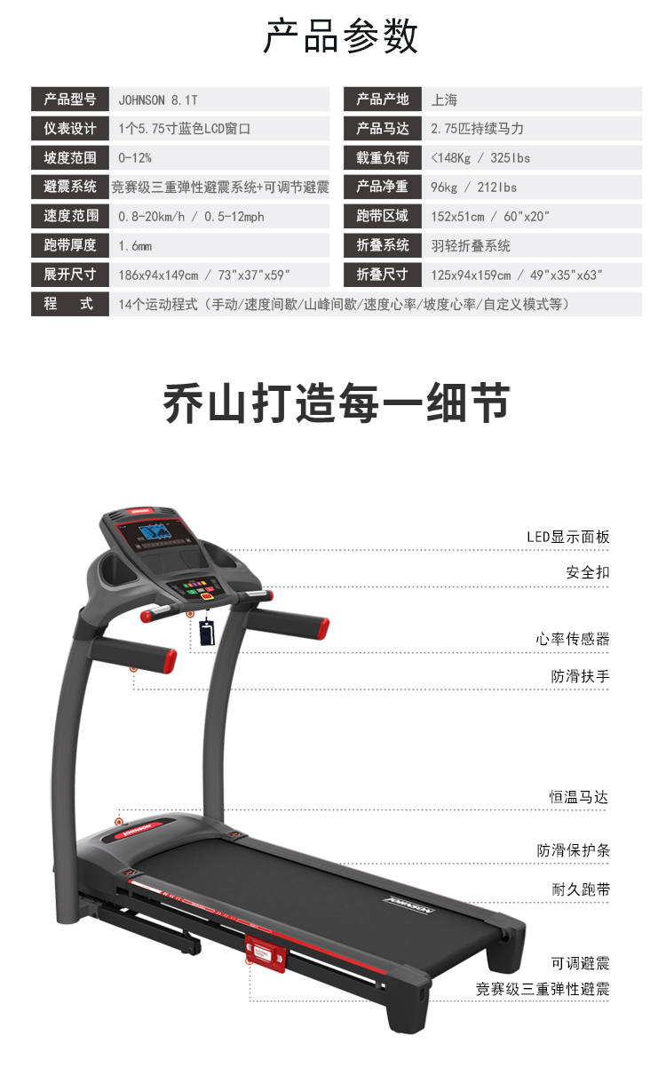 喬山JOHNSON跑步機8.1T PLUS升級款 |