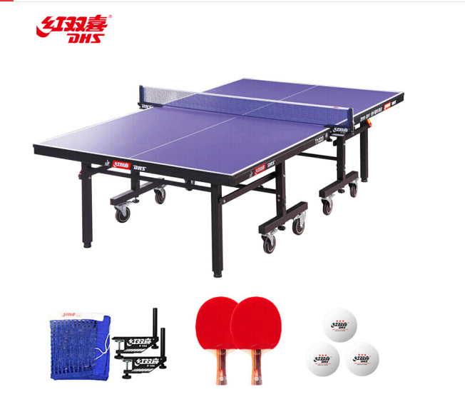 紅雙喜DHS 乒乓球桌室內乒乓球臺訓練比賽用乒乓球案子T1223贈網架/球拍/三星球