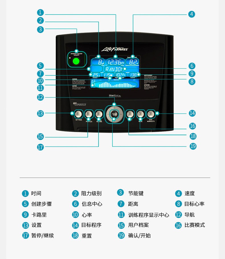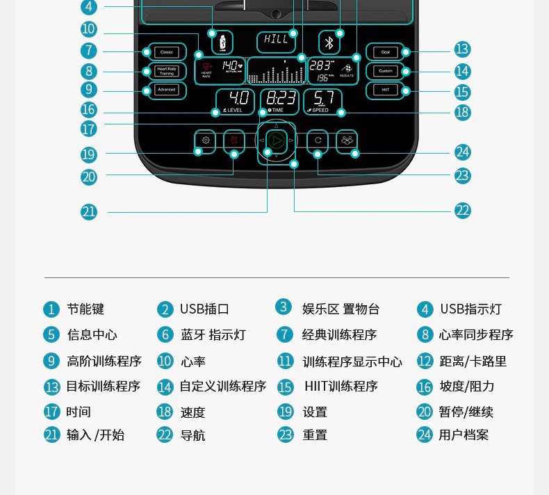 按鍵分布均勻,清晰明了,符合人體生物力學(xué)設(shè)計,尋找使用需求按鍵時方便快捷,及時調(diào)整運動狀態(tài)。